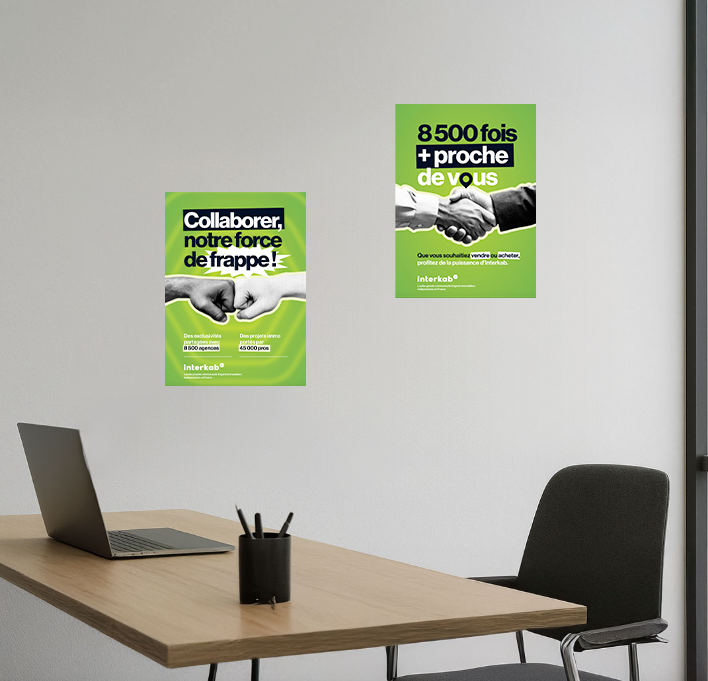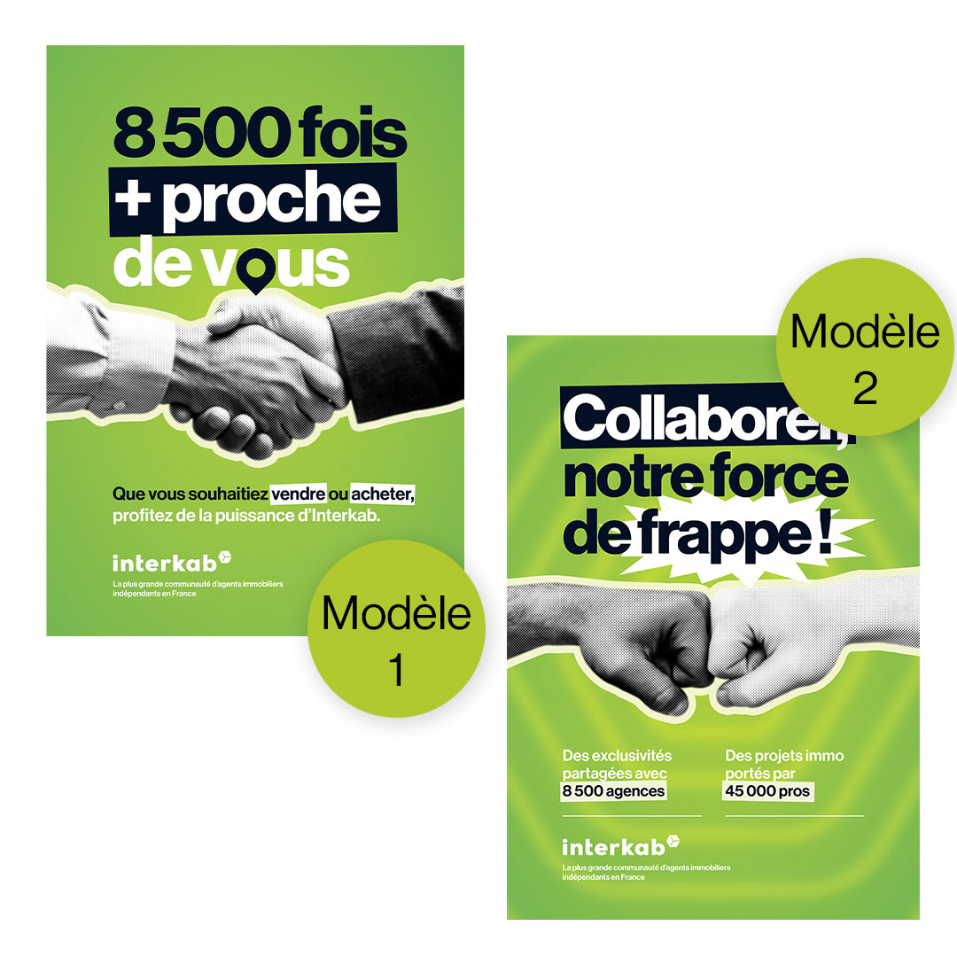 Décorez votre agence tout en valorisant votre expertise ! Des visuels percutants, des messages forts et tous les avantages du label Interkab illustrés pour vos clients, qu’ils soient acquéreurs ou vendeurs ! Faites de votre agence un vrai outil de communication.