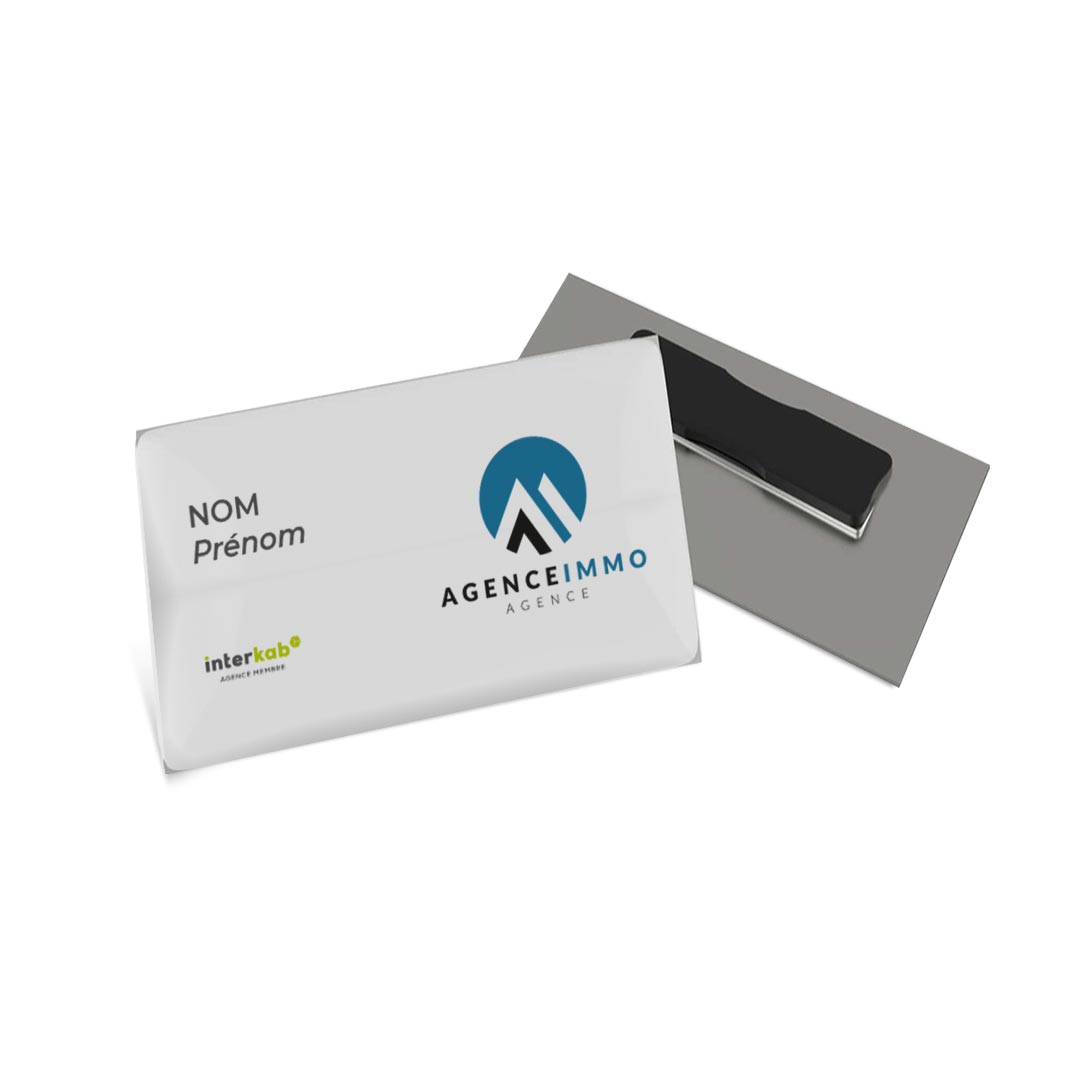 Ce badge en métal avec attache magnétique est personnalisable et vous permet de vous présenter aux clients avec les couleurs de votre agence.