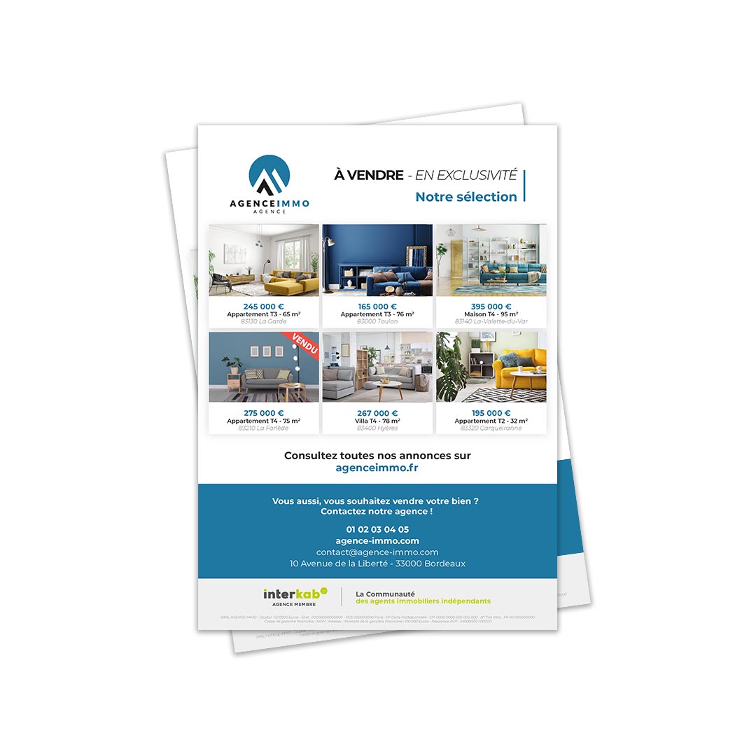 Grâce à un design personnalisé épuré, ces flyers vous permettront de promouvoir une sélection de biens en exclusivité et de maximiser la commercialisation de celles-ci auprès de votre cible.
