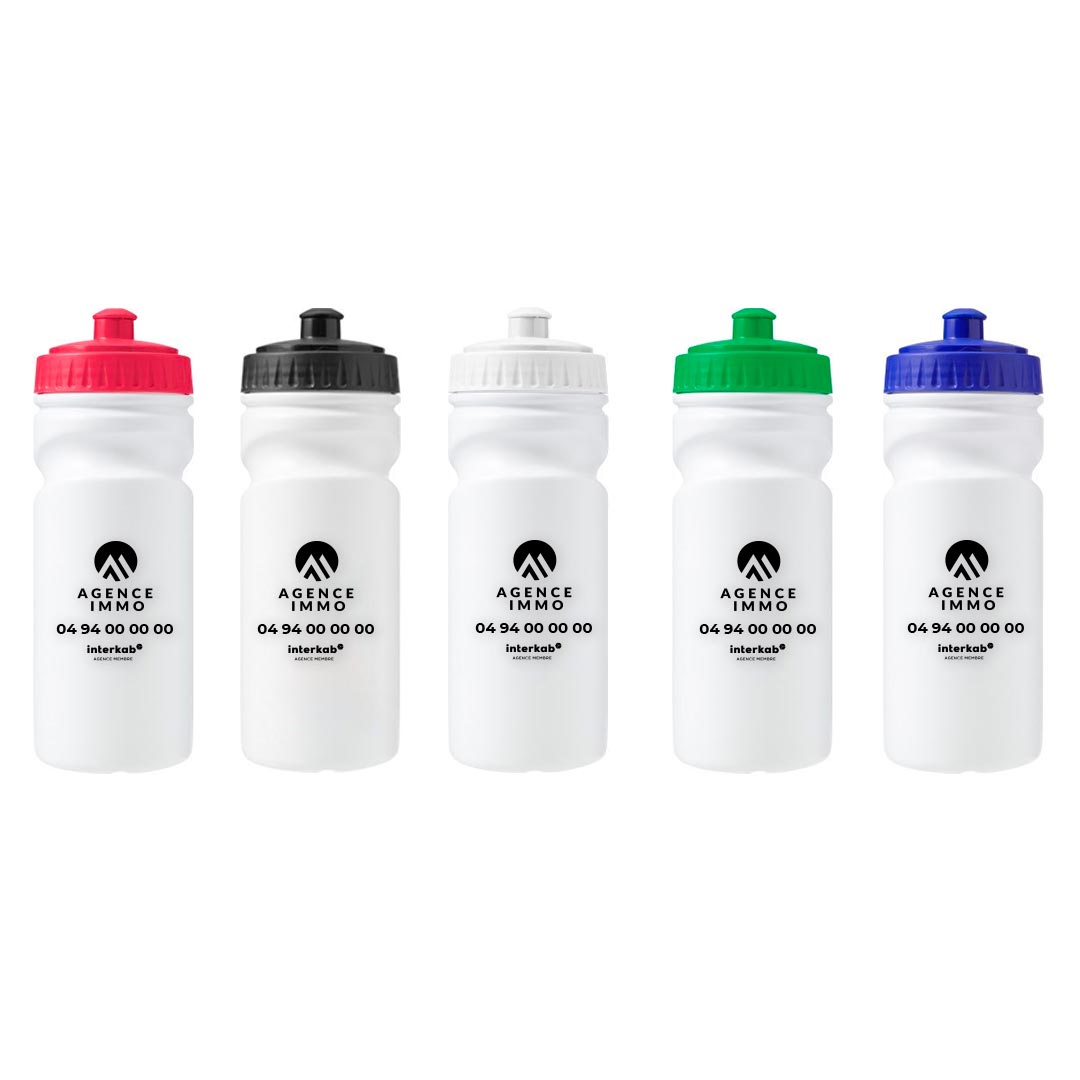 Gourde de sport à prise très pratique, en plastique rigide PE sans BPA. Anti fuite.