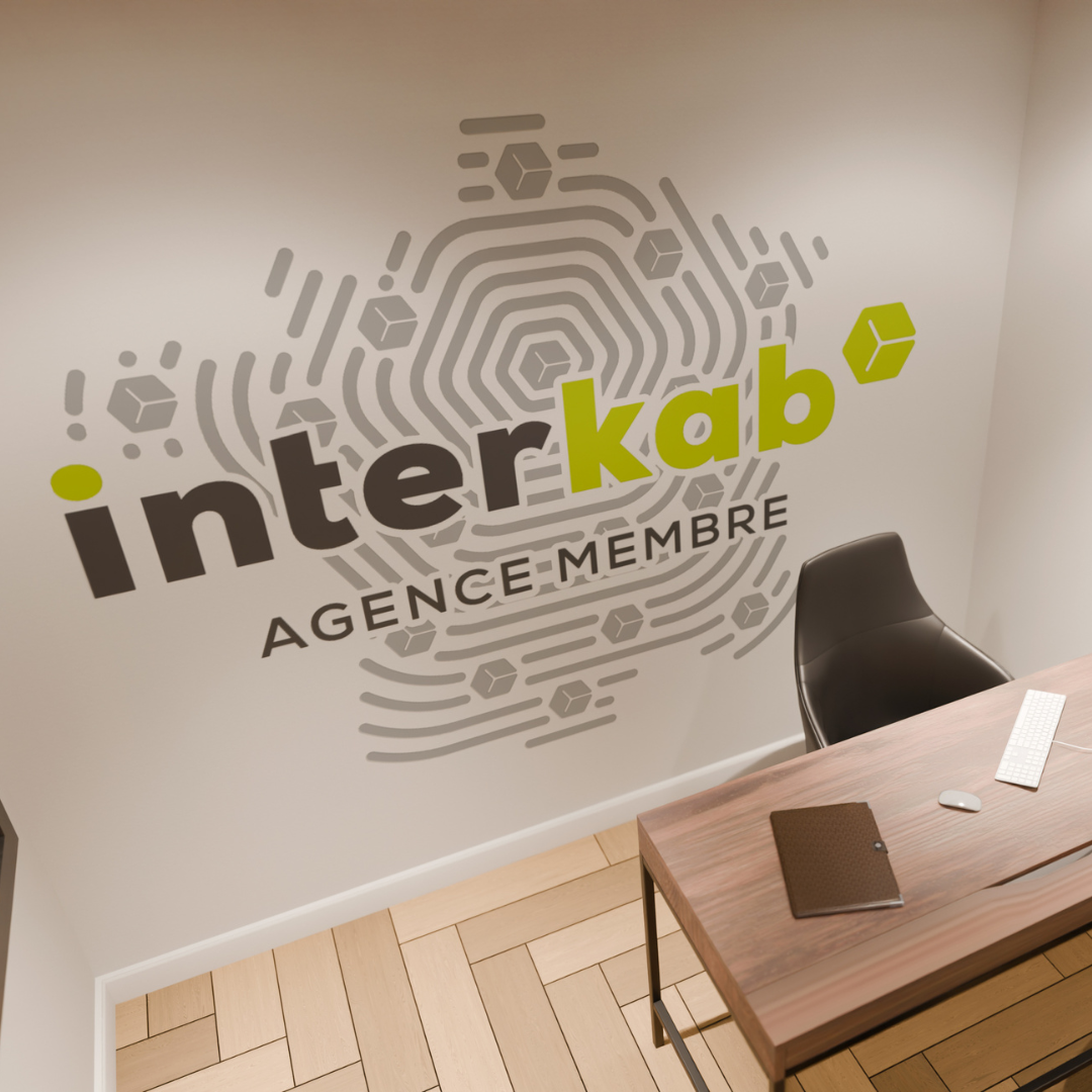 Apportez une touche d’Interkab à votre agence avec le sticker mural Interkab. Facile à poser, il valorise votre espace tout en rassurant vos clients grâce à une signalétique claire et soignée.