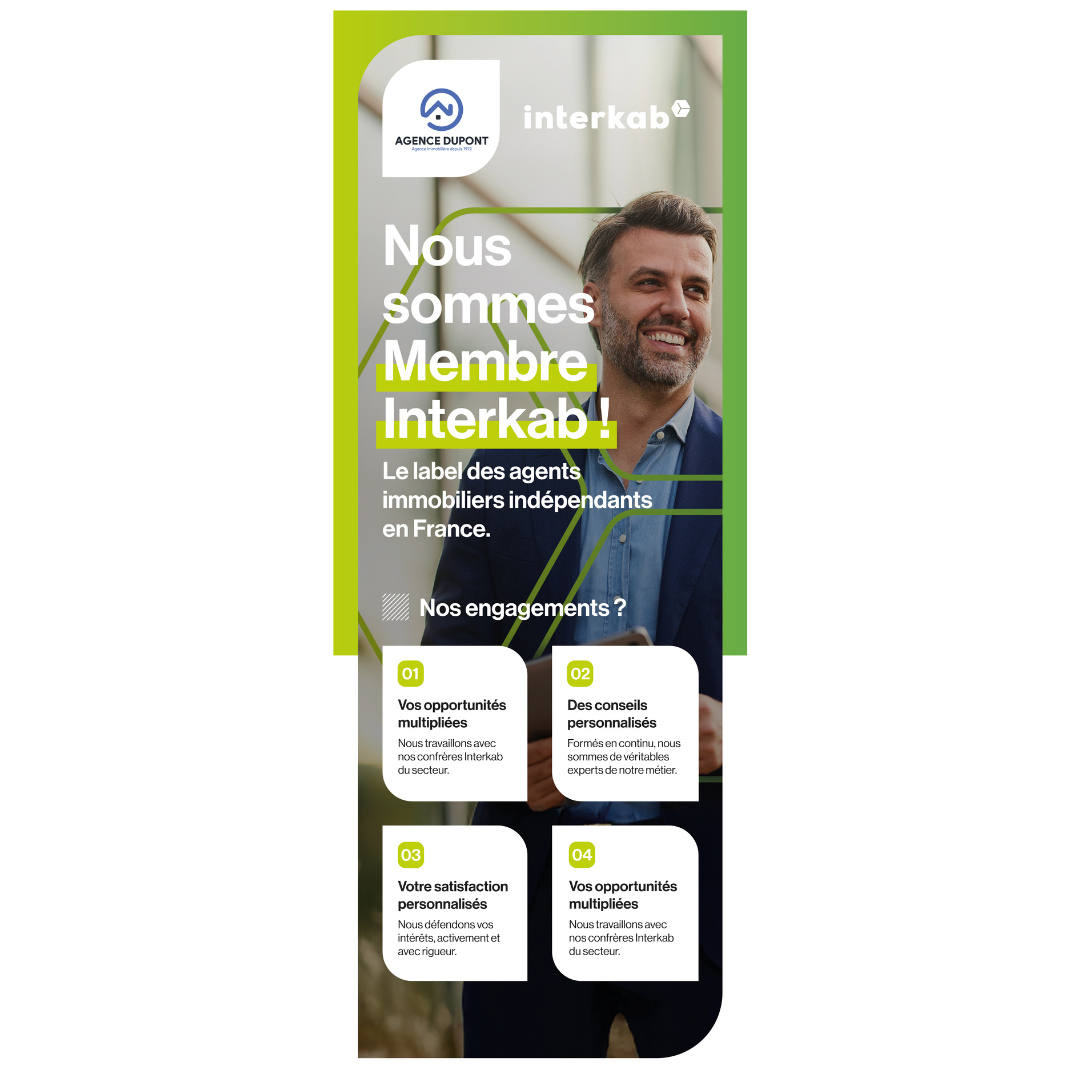 Nous vous proposons ce roll’up qui peut être personnalisé avec le logo de votre agence.