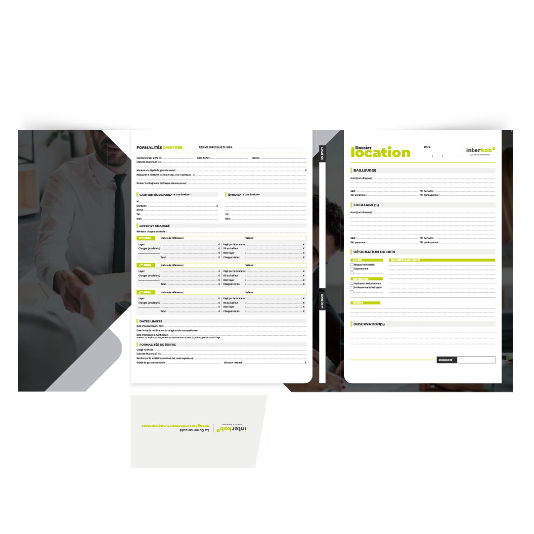 Soignez votre image grâce à nos pochettes « Dossier de location » haut de gamme, imprimées sur du papier de qualité supérieure, pour garantir une impression inoubliable.
