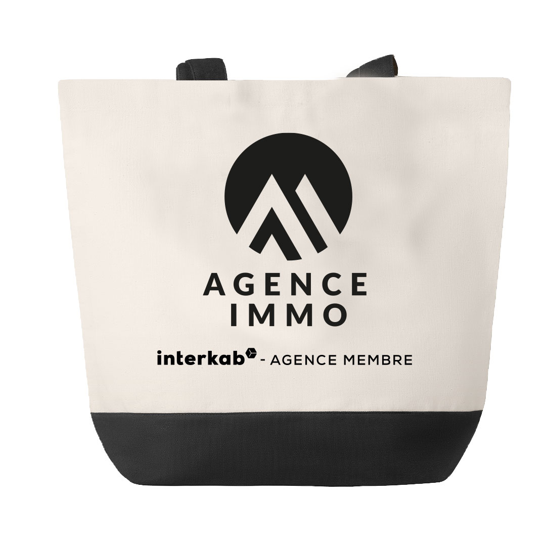 Sac de plage ou shopping en toile 280 gr/m² avec détail coloré en bas et poignées assorties (poche intérieure). Taille unique